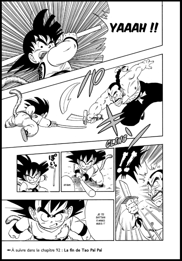 Le duel légendaire entre Goku et Tao Pai Pai se déroule dans le tome 10 du manga Dragon Ball, à partir du chapitre 85 : « Le terrible Tao Pai Pai », jusqu’au chapitre 88.